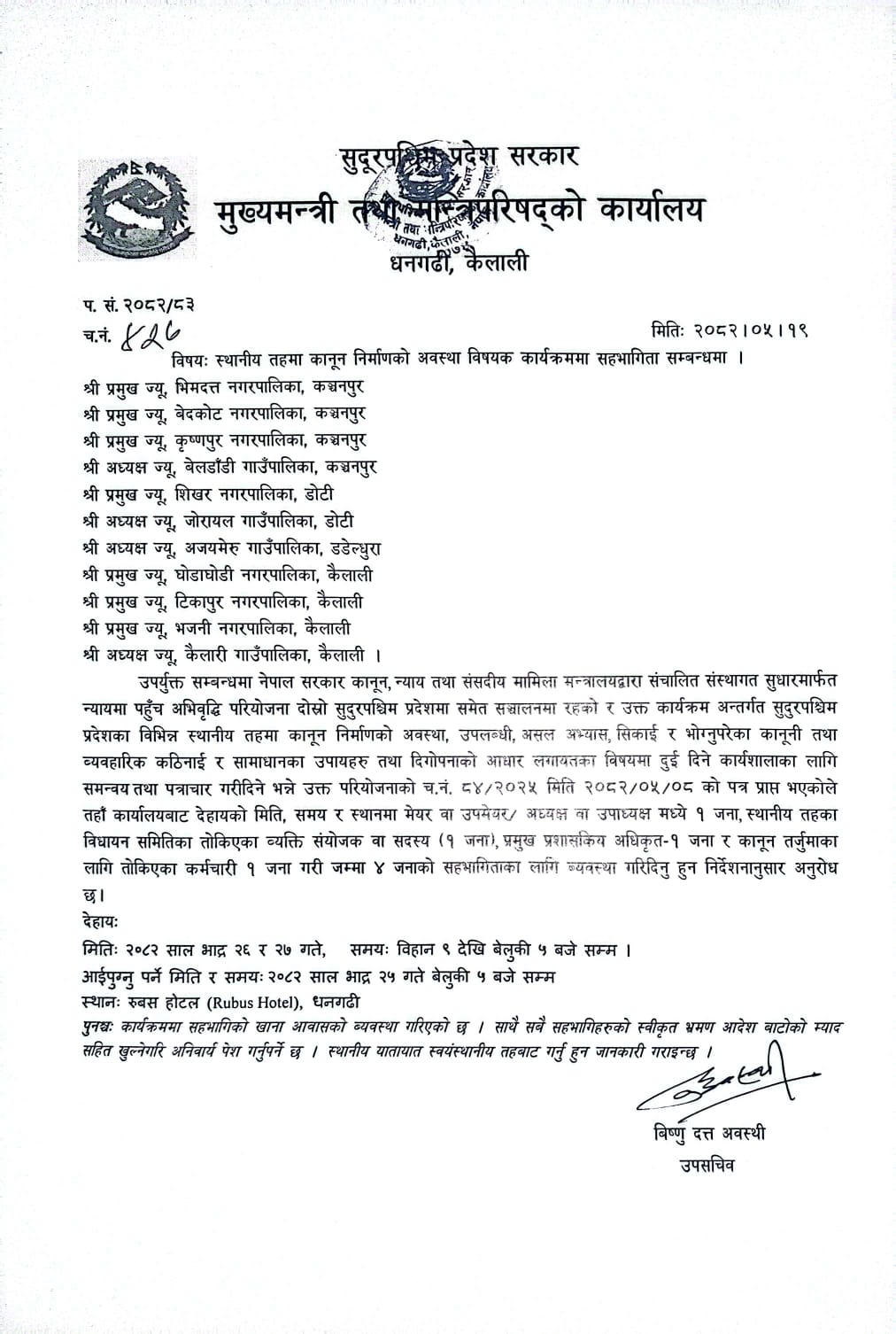 सुदूरपश्चिम प्रदेश, नगर कार्यपालिकाको कार्यालय.