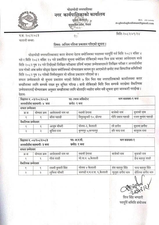 अन्तिम नतिजा प्रकाशन गरिएको सूचना ।