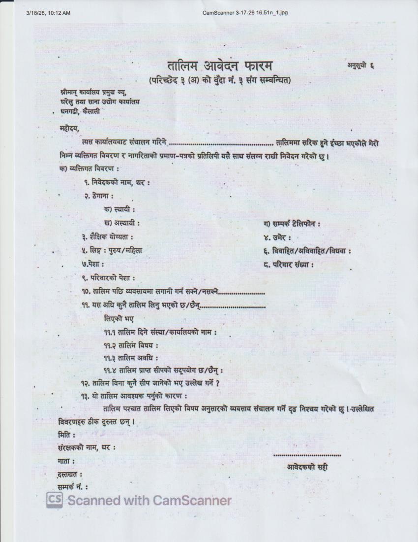 फास्टफुड तालिम सञ्चालन सम्बन्धी सूचना ।