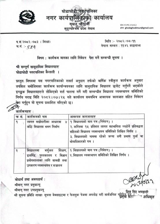 कार्यक्रम मागका लागि निवेदन पेश गर्ने सम्बन्धी सूचना।