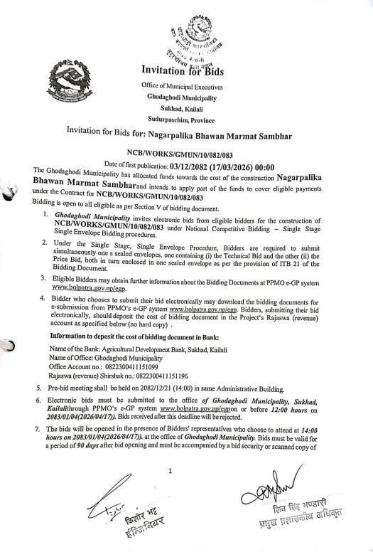 . घोडाघोडी नगरपालिका, सुदूरपश्चिम प्रदेश, नगर कार्यपालिकाको कार्यालय. सर्वाधिकार सुरक्षित
