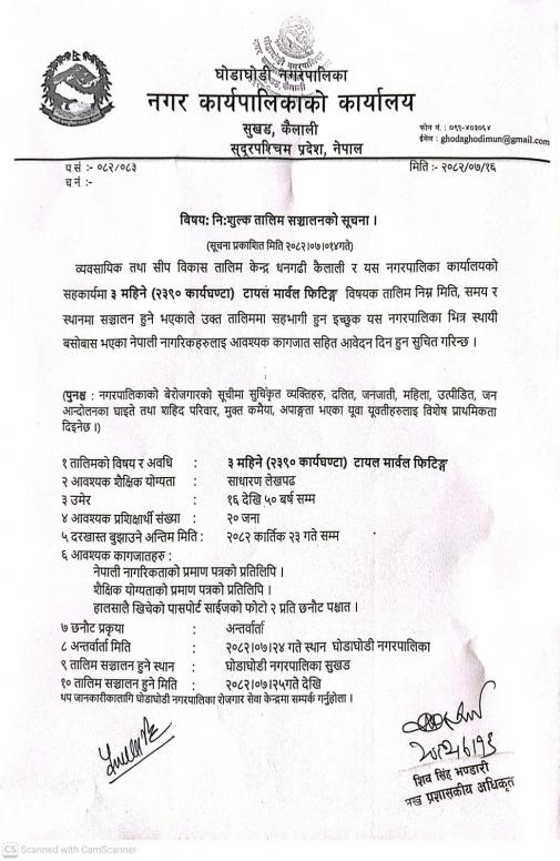 निशुल्क तालिम सञ्चालन सम्बन्धि सूचना ।