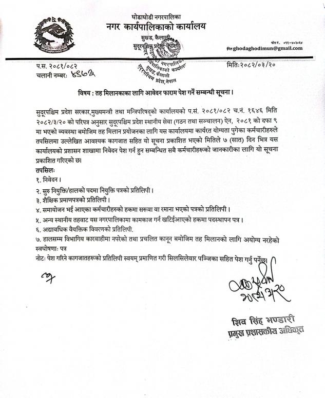 . घोडाघोडी नगरपालिका, सुदूरपश्चिम प्रदेश, नगर कार्यपालिकाको कार्यालय. सर्वाधिकार सुरक्षित
