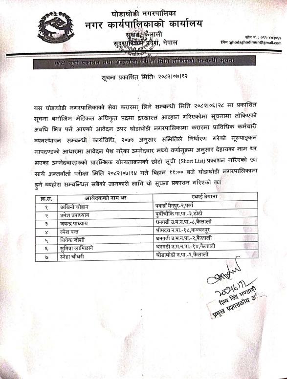 छोटो सूची प्रकाशन तथा अन्तरवार्ता परिक्षा मिति तोकिएको सम्बन्धि सूचना ।