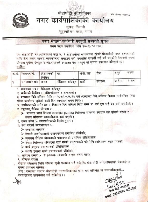 . घोडाघोडी नगरपालिका, सुदूरपश्चिम प्रदेश, नगर कार्यपालिकाको कार्यालय. सर्वाधिकार सुरक्षित