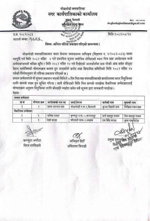 नतिजा प्रकाशन गरिएको सम्वन्धमा जानकारी ।