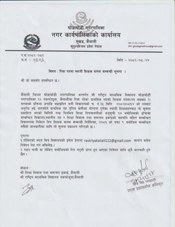 रिक्त पदमा स्थायी शिक्षक सरूवा सम्बन्धी सूचना ।