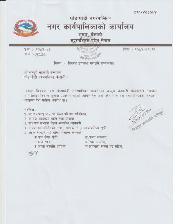विवरण उपलब्ध गराउने सम्बन्धमा ।